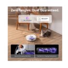 The dynamic side brushes shift from a ‘V’ to an ‘II’ shape, adjusting its angle to actively loosen tangled hair for truly tangle-free cleaning.