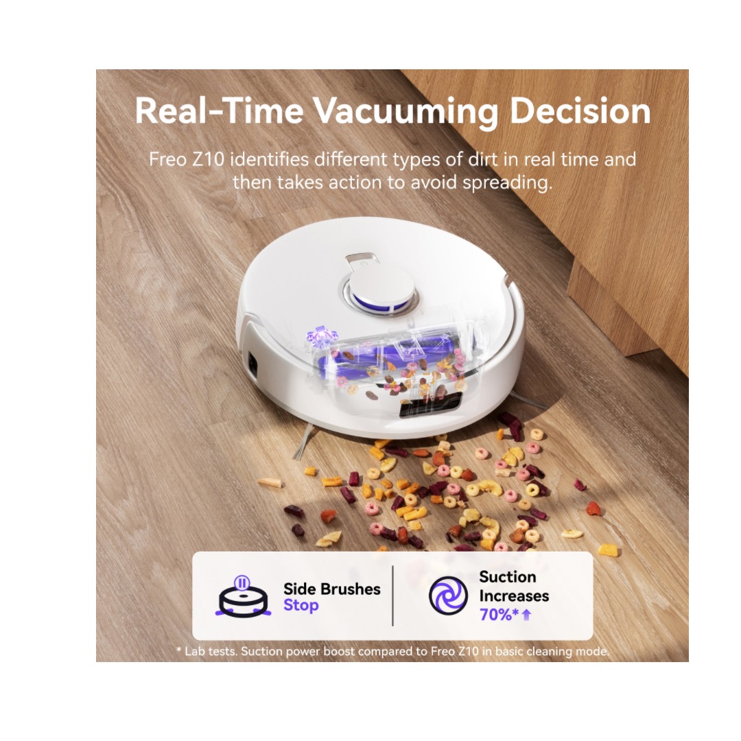 Freo Z10 features an unique floating brush that guides hair and fur into the suction pipe. It ensures sustained performance without maintenance and zero risk of tangling.