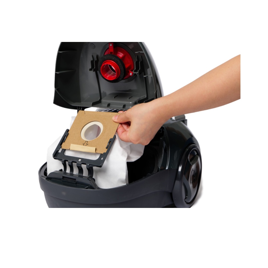- Blockage indicator alerts the user when it’s time to change the bag or clear the air channel