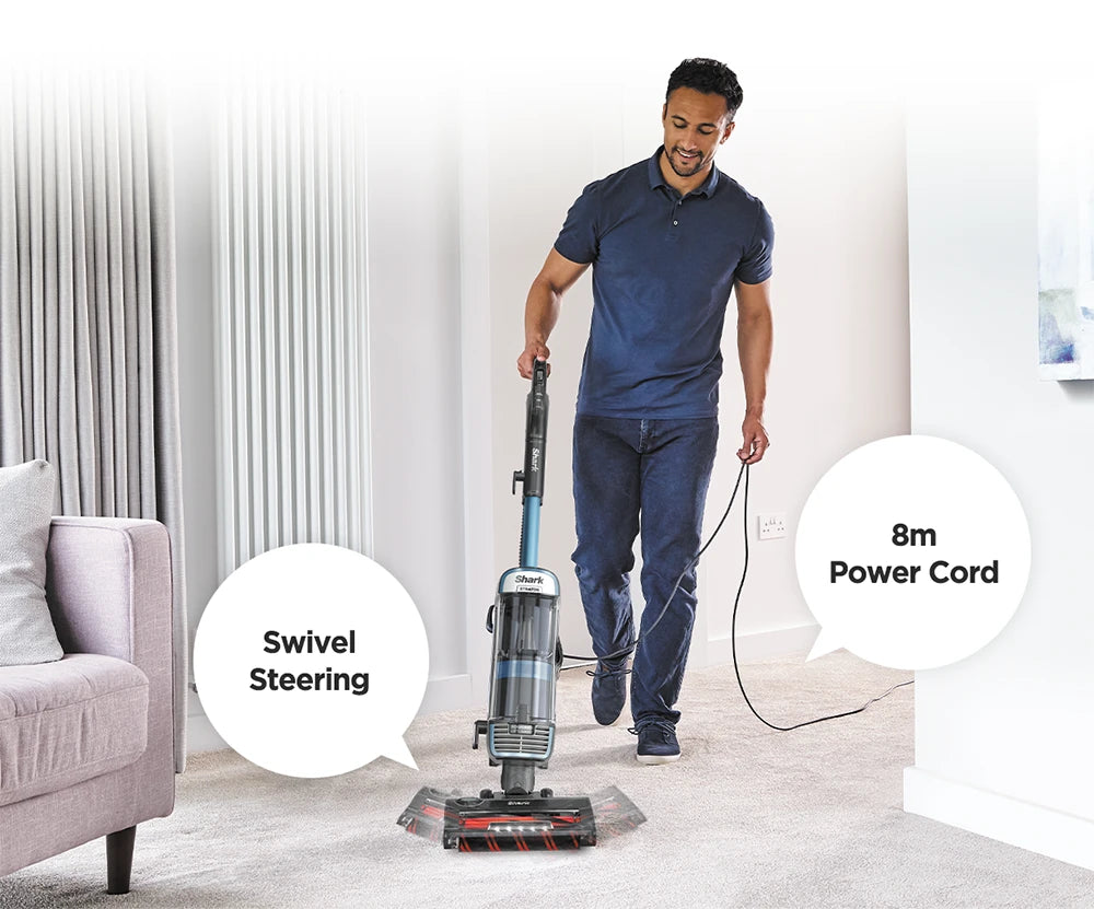 • Effortless Mobility: This Shark vacuum cleaner comes with an enhanced swivel steering function and an 8m long power cord for easy manoeuvering around furniture or in between rooms.