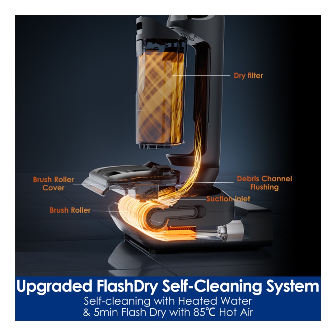 Upgraded FlashDry Self-Cleaning System for Thorough Cleaning: Achieve a hassle-free after-use experience. It uses fresh water heated to 85°C to effectively dissolve stains from the pipe to the brush roller, providing superior self-cleaning results. The upgraded 85°C hot air effectively dries every part of the machine