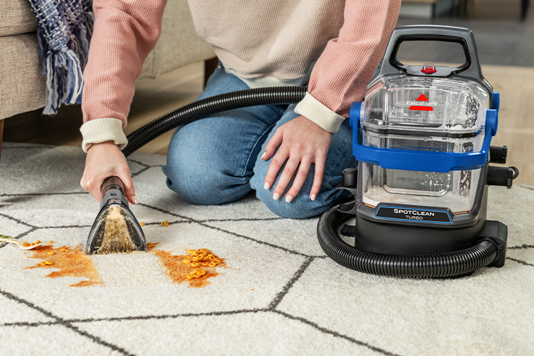 Enjoy professional-style results with the NEW SpotClean™ Turbo – now 50% quieter than the previous model. Get ultimate stain extraction with the strongest suction power, extra-large capacity tanks, new 4″ Self-Cleaning Tough Stain Tool, plus a durable and flexible hose making it easy to clean carpet and upholstery in hard-to-reach areas.