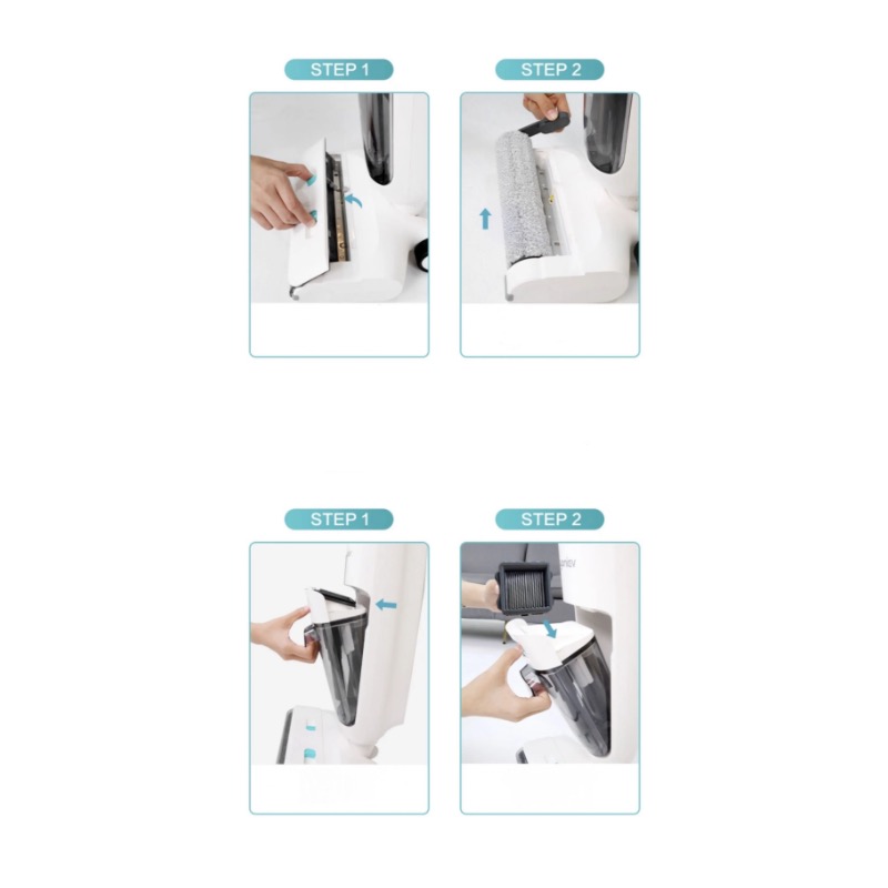 𝐄𝐧𝐡𝐚𝐧𝐜𝐞𝐝 𝐂𝐥𝐞𝐚𝐧𝐢𝐧𝐠 𝐅𝐥𝐞𝐱𝐢𝐛𝐢𝐥𝐢𝐭𝐲 𝐒𝐨𝐥𝐮𝐭𝐢𝐨𝐧: Mini assistive wheels allow for effortless maneuvering in both directions, while the repositioned clean water tank, embedded above the brush head, reduces the body weight, making cleaning easier. The 45° swivel design flexibly swivels left and right, even when lying flat.