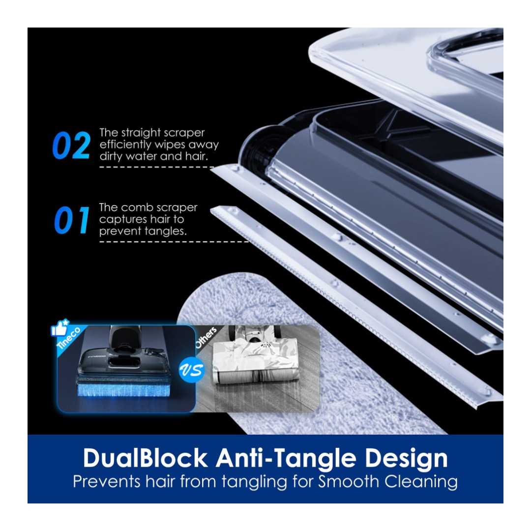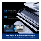 DualBlock Anti-Tangle Design: The comb scraper captures hair to prevent tangles, while the straight scraper efficiently wipes away dirty water and hair. This dual-layer system ensures uninterrupted cleaning by effectively preventing hair tangles