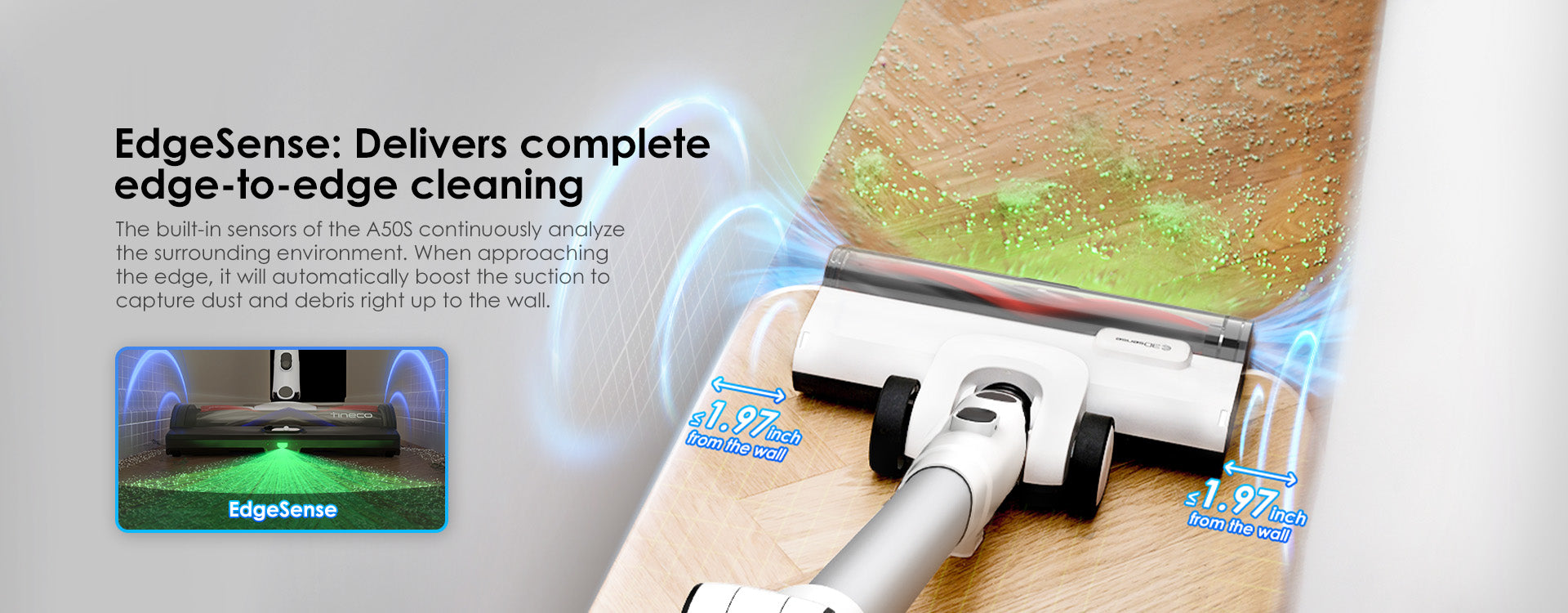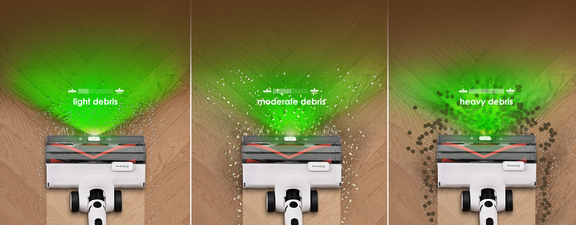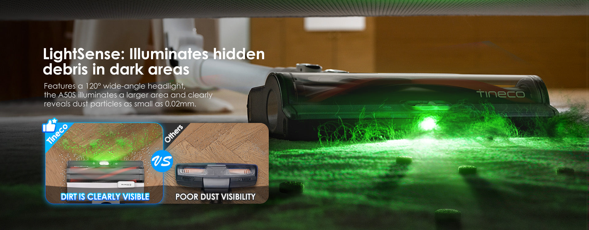 - Integrates DustSense, EdgeSense and LightSense, the cleaning efficiency has been boosted by 66%*. Led light can guide you through the cleaning process: from quick start-ups to real-time working status.