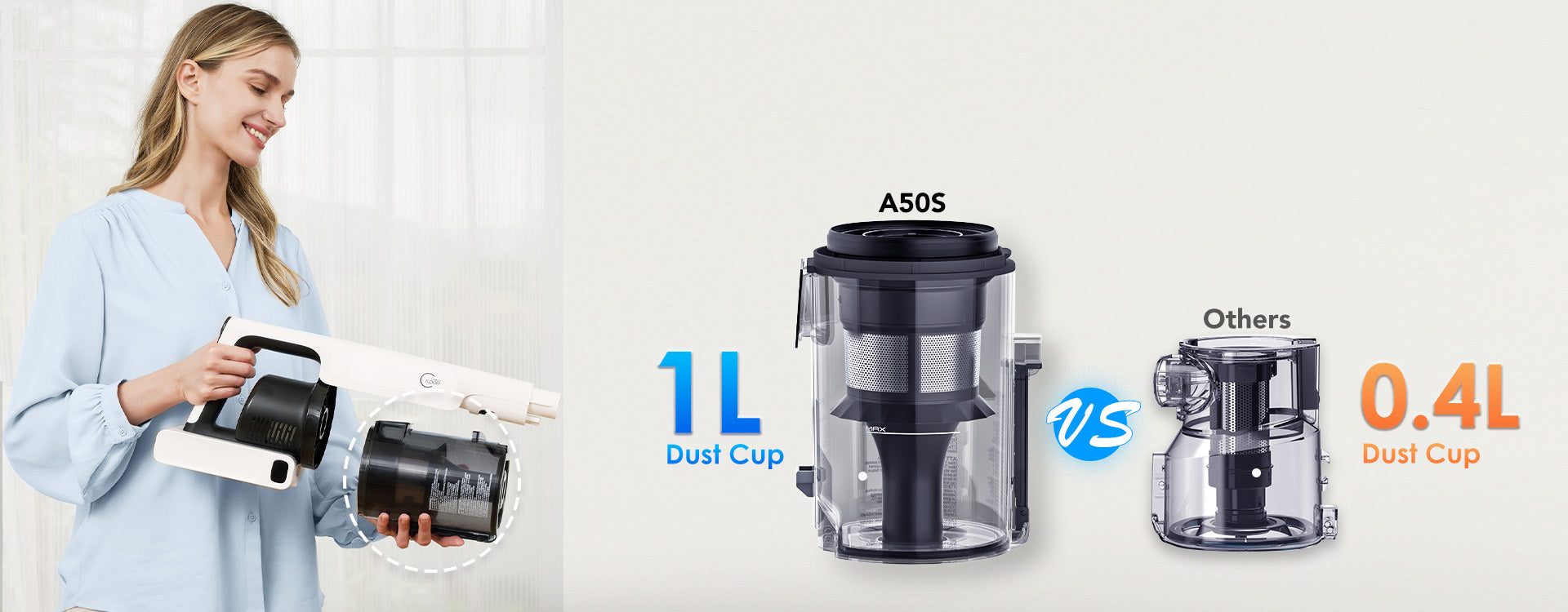 - The 1L large dustbin minimizes the need for frequent emptying, enabling you to maintain a continuous cleaning flow.