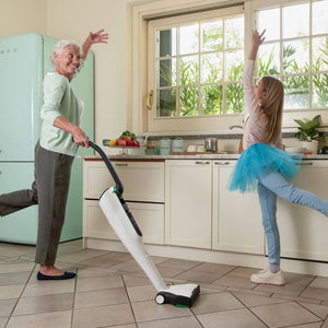 The makers of Thermomix® have excelled again, with a best-in-class cordless vacuum that packs the biggest suction power⁴, quietest motor⁵, and longest-lasting battery⁶. And the list of tech smarts goes on. Four suction levels, plus a boost button for bigger messes like dropped pasta and biscuits fragments. A brush speed that automatically adjusts to your floor type, and a brush head that rotates 180° to effortlessly clean every corner.